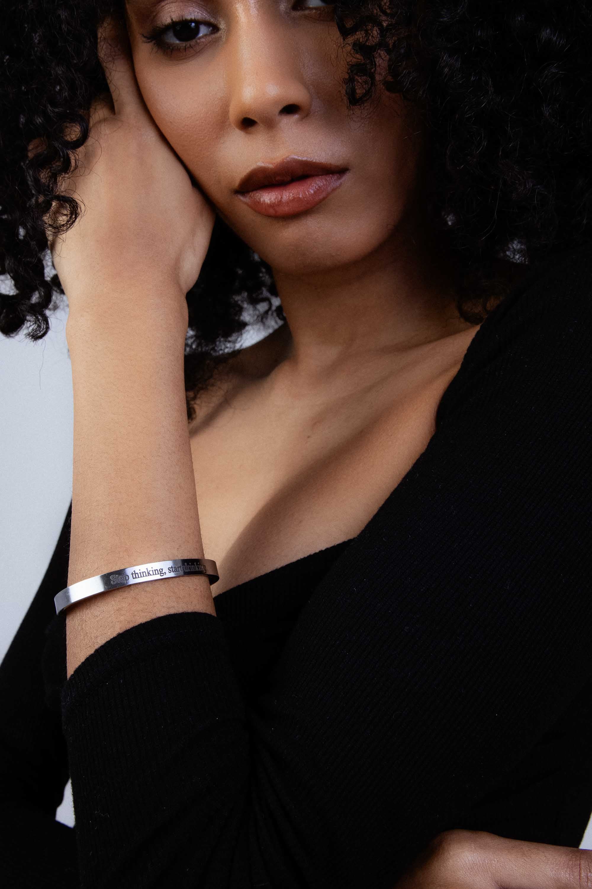 My Quote Custom Bangle is a beautifully personalized accessory that lets you carry your favorite words with you. Whether it's a meaningful quote, name, or special date, this sleek bangle is designed to add a personal touch to any outfit. Made from high-quality materials, it’s both durable and stylish—perfect for daily wear or special occasions. Simple yet elegant, this custom bangle makes a thoughtful gift or a unique addition to your own collection, offering a timeless way to express yourself.